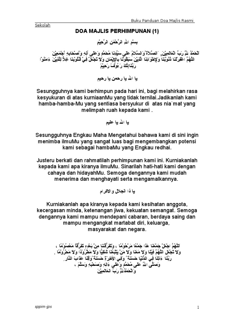 Doa Doa Majlis Rasmi Sekolah Pdf